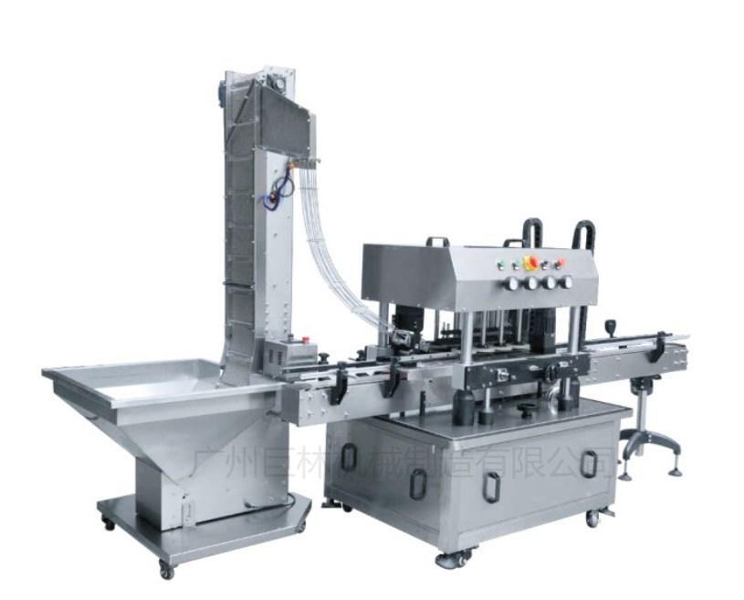 3、瓶子在向前運行的過程中,上蓋器自動下蓋,瓶蓋被四組搓蓋輪自動擰緊。既可用于單機生產,故障自動停機,更是連線生產的理想機型。